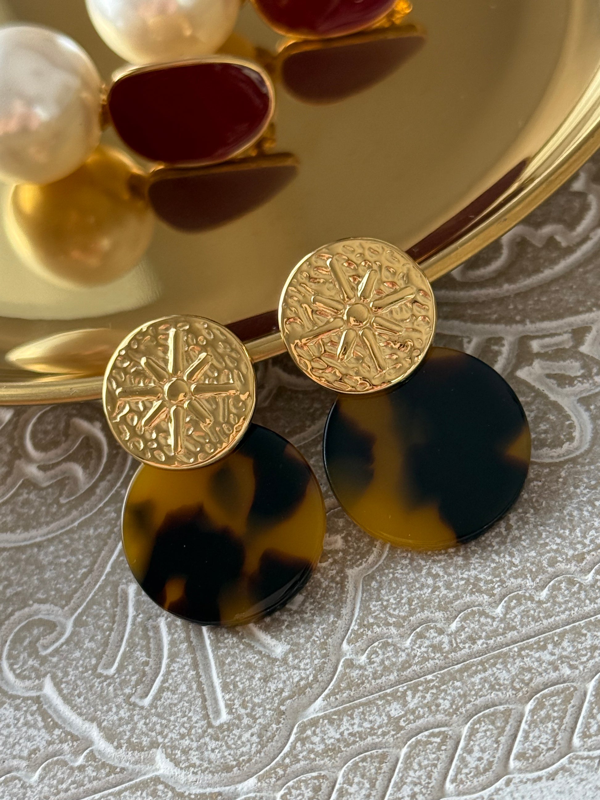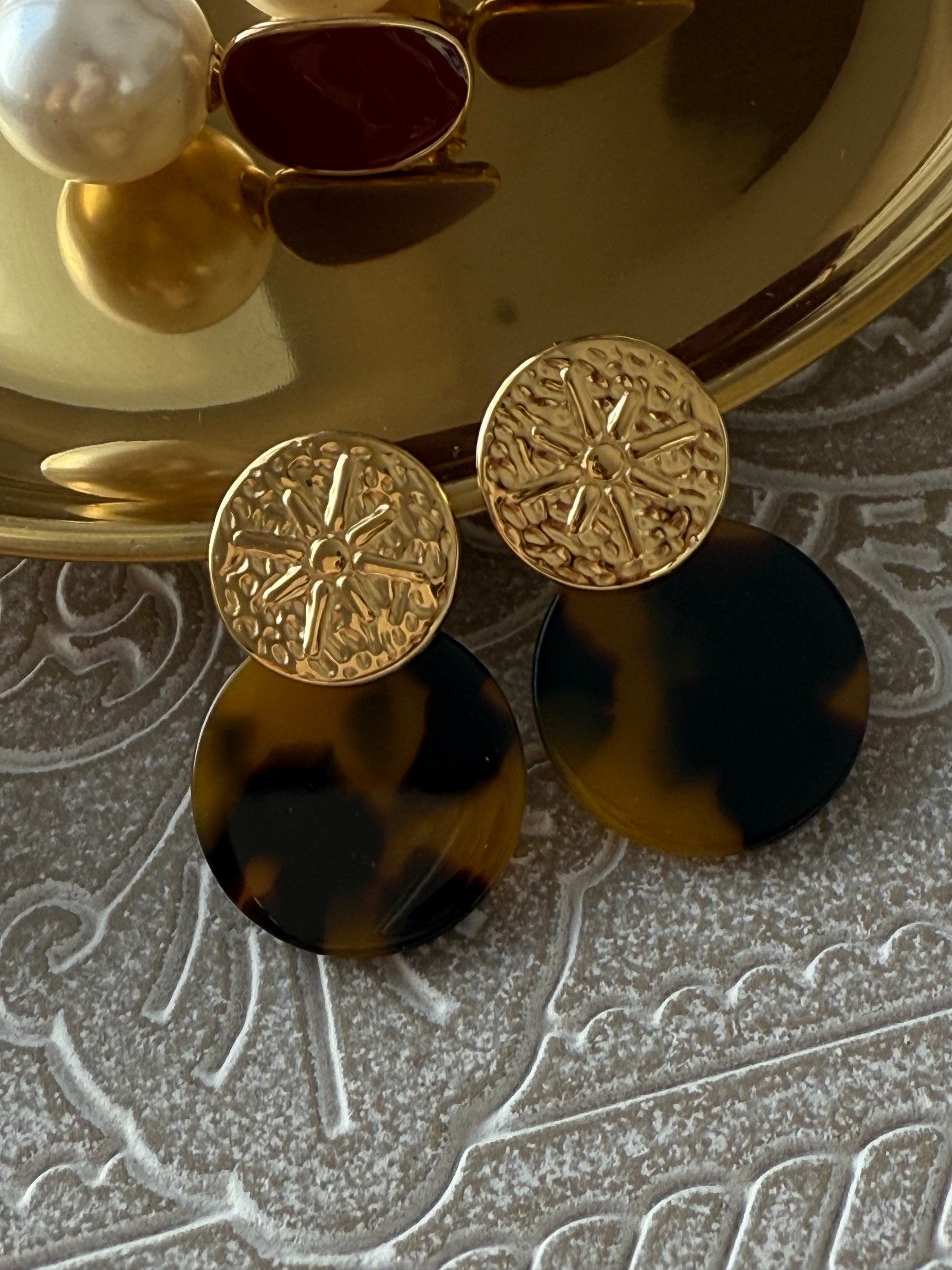 Καρφωτα σκουλαρικια απο επιχρυσωμενο ανοξειδωτο ατσάλι με ακρυλικο στρογγυλο στοιχείο animal print.