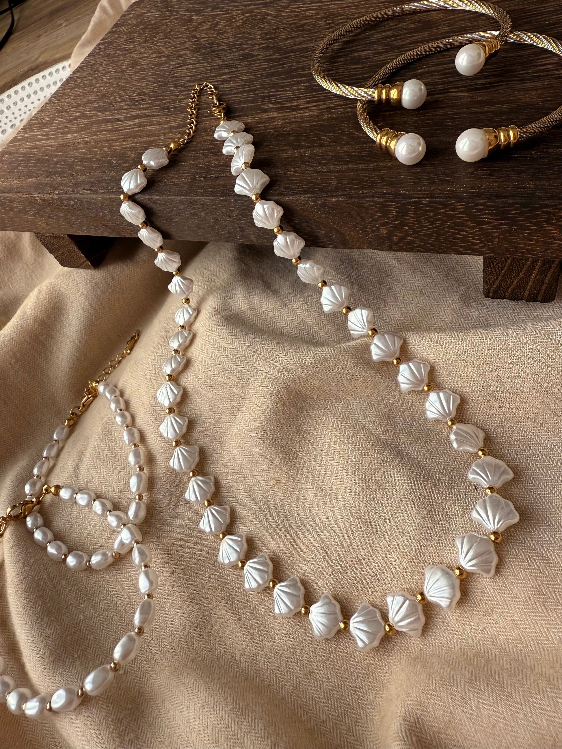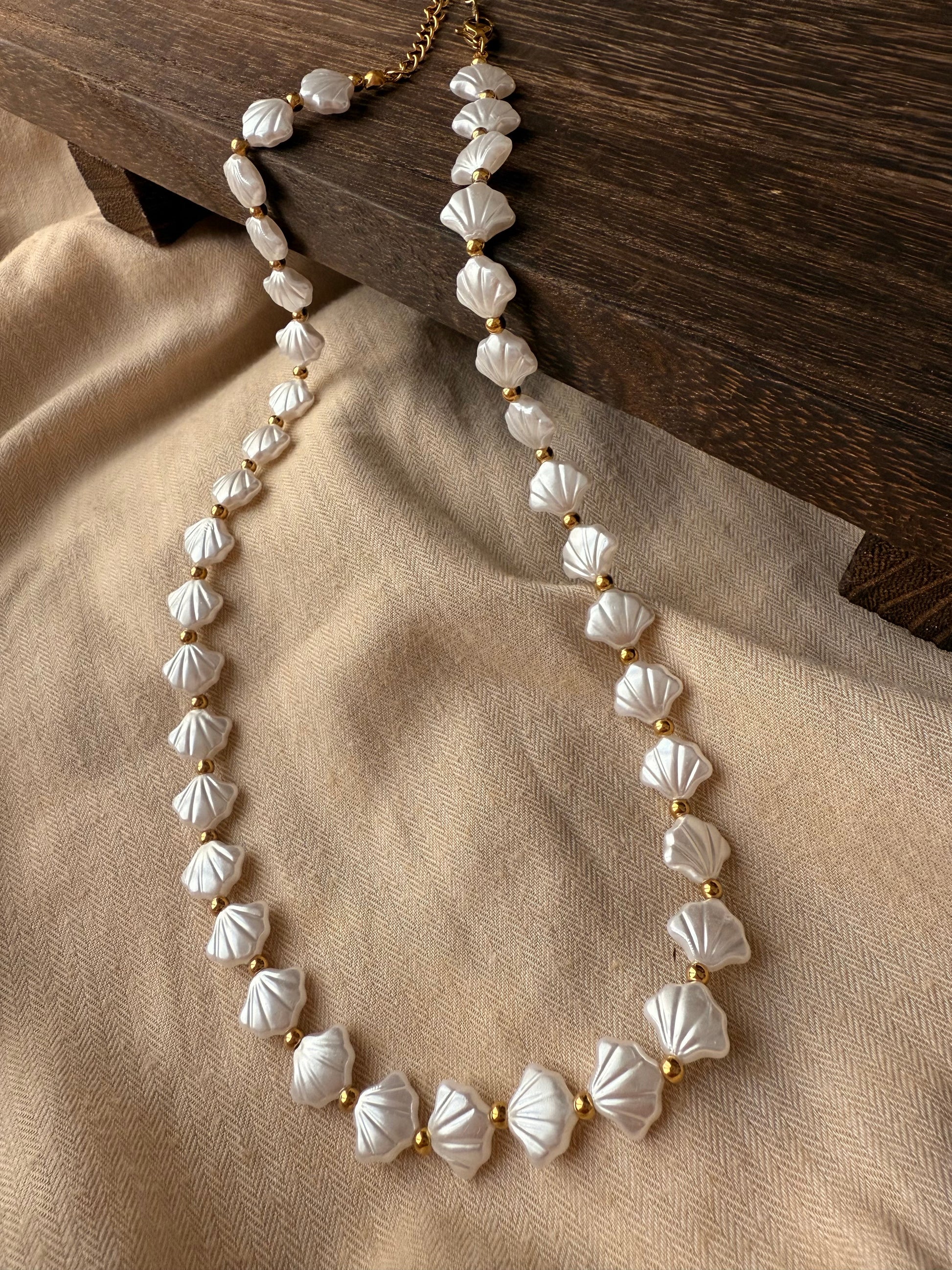 Άκρως καλοκαιρινό κολιέ με ακρυλικές χάντρες σε σχήμα αχιβάδα.