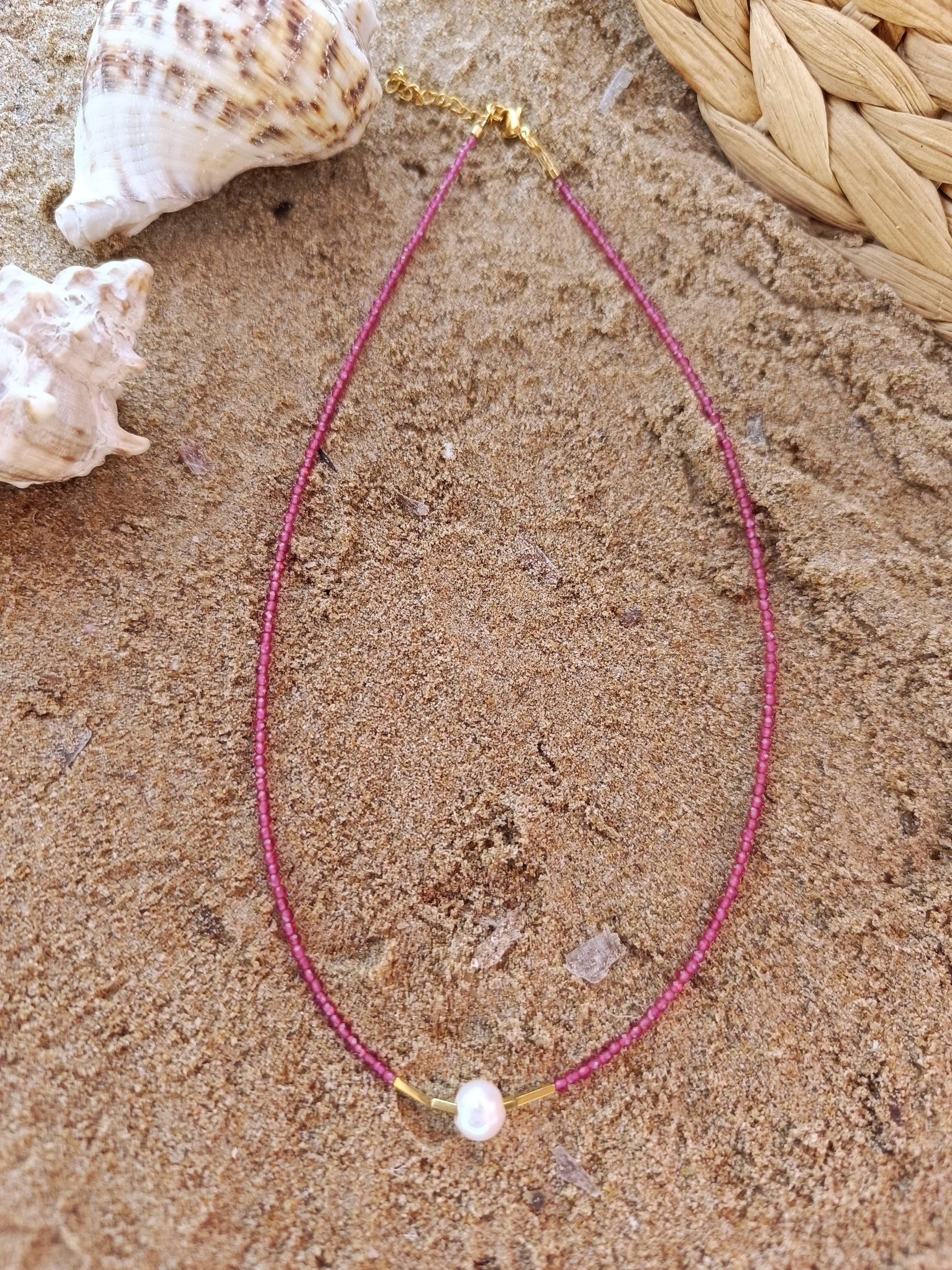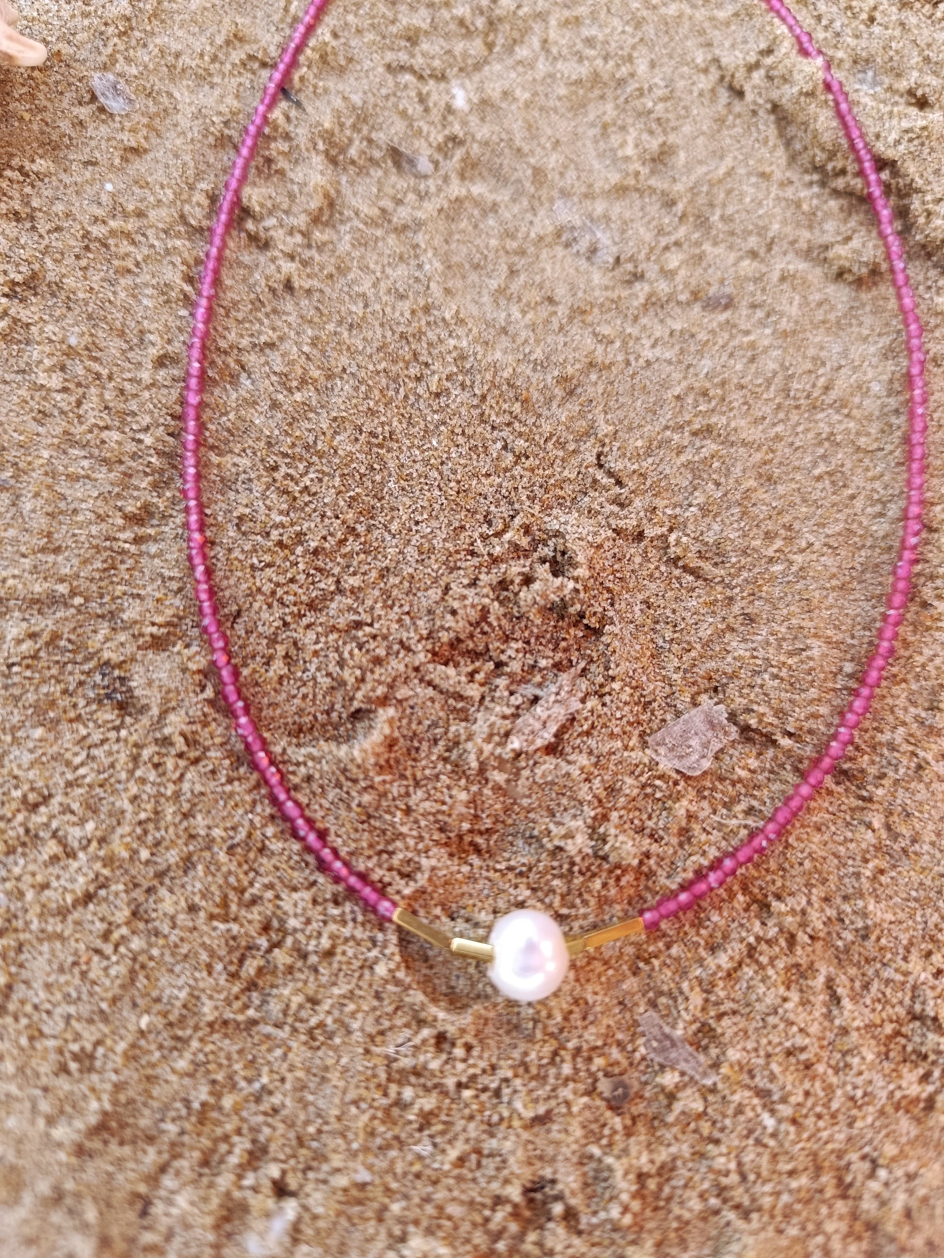 Χειροποίητο κολιέ με κρύσταλλα ΑΑΑ ποιότητας σε ροζ απόχρωση και μαργαριτάρι καλλιέργειας.