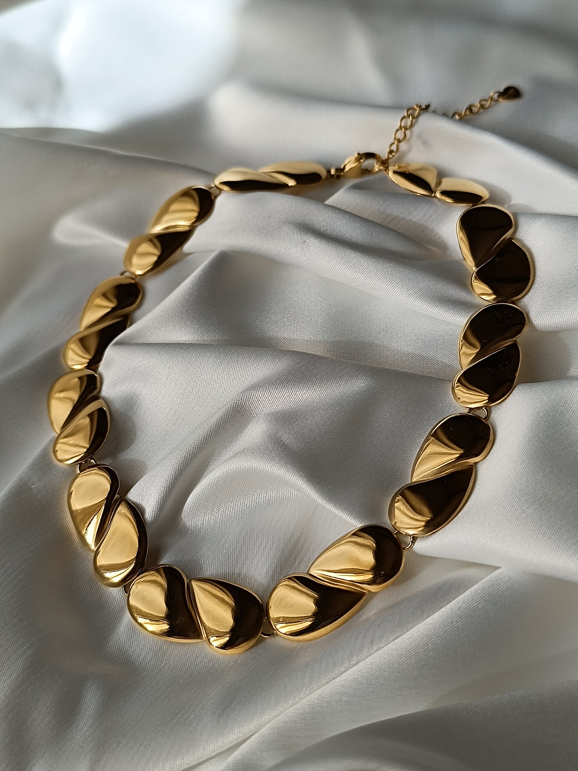 Περιδέραιο σε σχήμα ενωμένης σταγόνας, από επιχρυσωμένο ανοξείδωτο ατσάλι.