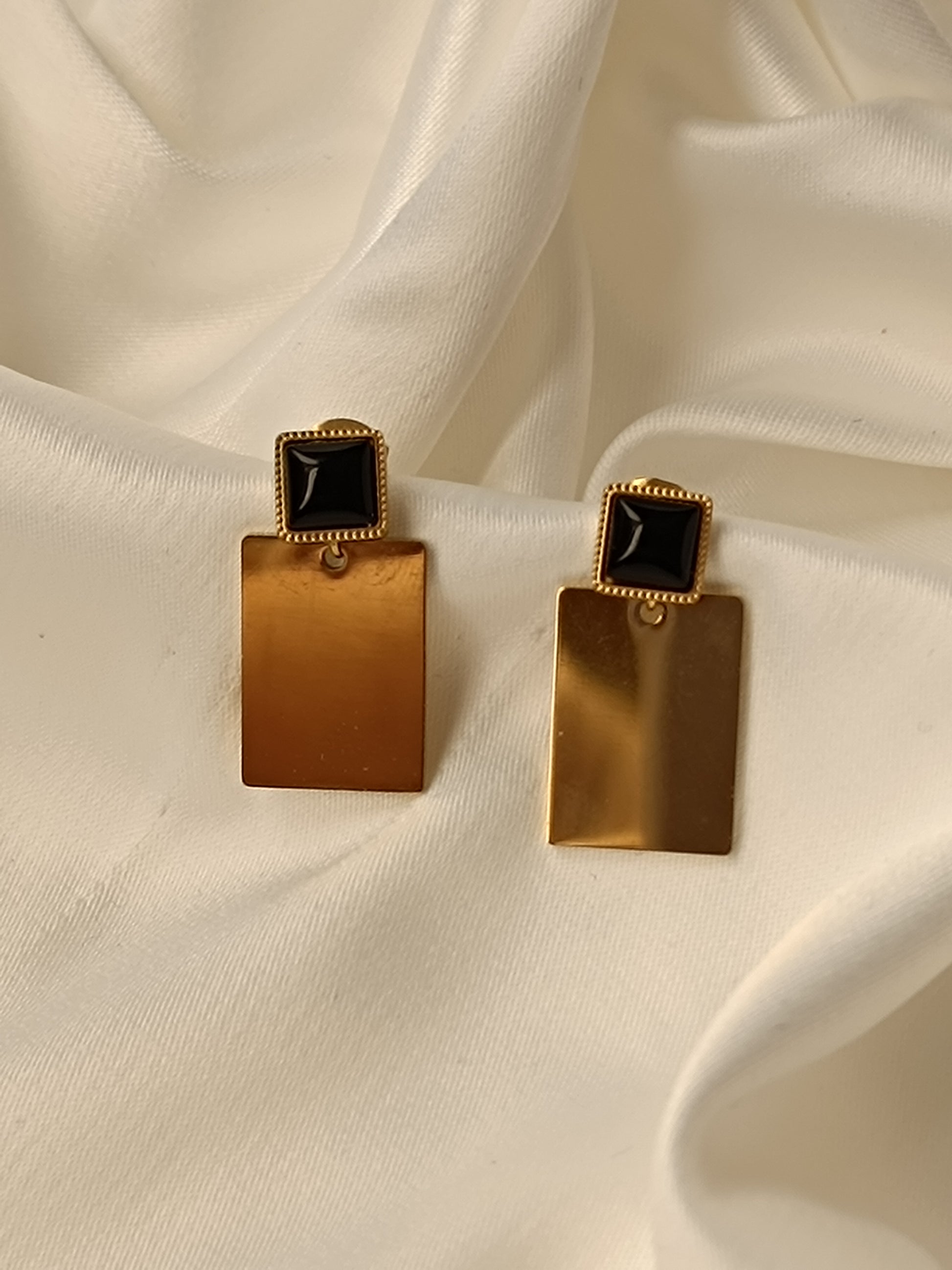 Κομψά καρφωτά σκουλαρίκια, με μαύρη πέτρα,